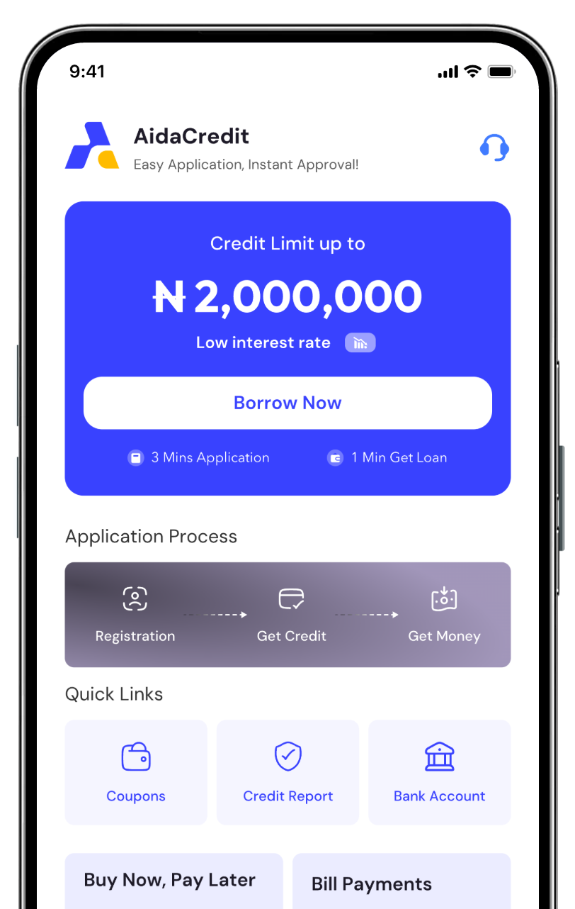 is a CBN Approved company that economically empower micro-entrepreneurs and unbanked people by providing no collateral loans using our app AidaCredit. Loans range from ₦4,000 to ₦1,000,000 with a repayment period of 14 days to 12 months. Customers can also take out multiple loans with a total maximum value of ₦1,000,000.